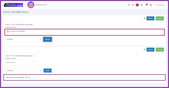 Podés seguir trabajando desde Guardar o ir directo a Cursos/Ítems.